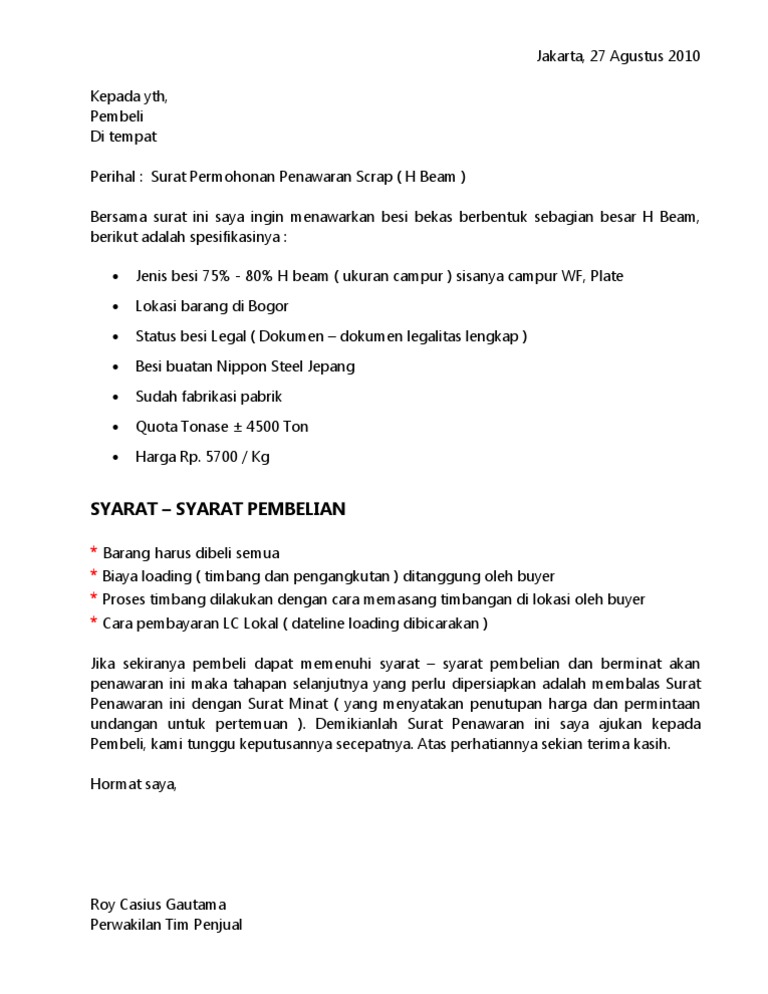 for "Surat Penawaran Pembelian Besi Bekas Di Pabrik : Contoh surat penawaran pembelian barang bekas contoh seputar surat"